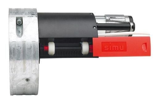 La gamme T6, adaptée aux volets roulants, développe des couples allant de 40 à 120 Nm. Cette gamme de moteurs peut être contrôlée par technologie SIMU-Hz. Déverrouillage manuel par manivelle.
